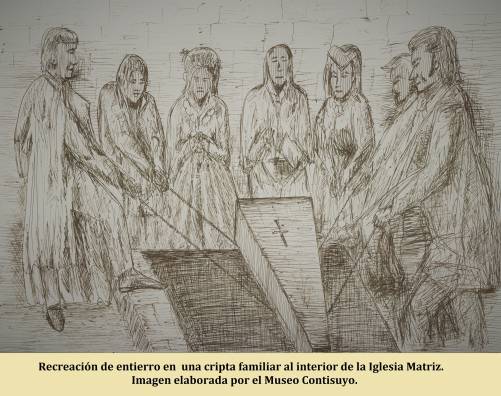 Diversos Manuscritos del siglo XVI y XVII señalan que los difuntos del valle se encontraban enterrados en bóvedas, en el cuerpo de la iglesia, así como en la Buhardilla, espacio exterior inmediato. Montenegro y Ubalde, en su crónica escrita a principios del siglo XVII, deja constancia del escaso oxígeno refrigerante circulante en el Santuario. (Luis E. Kuon, L.Watanabe 1981, 1990)