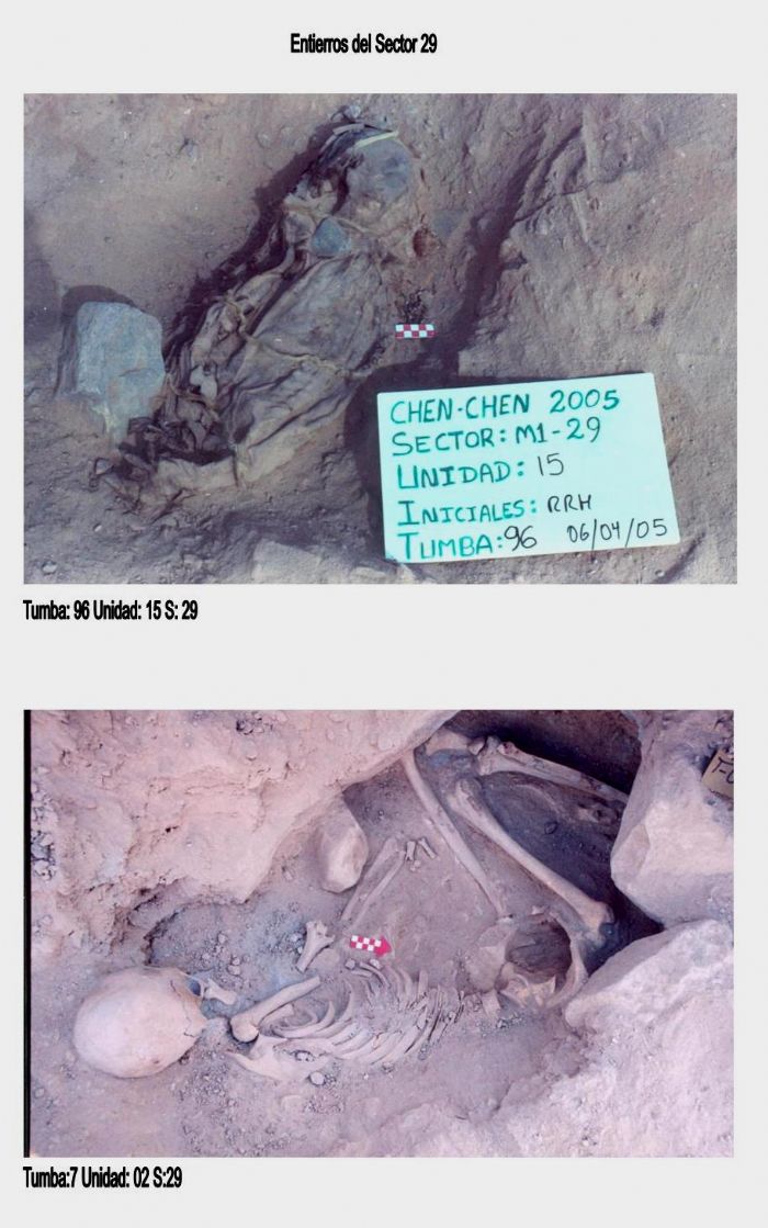 A diferencia del sector 28, en el Sector 29 el patrón funerario es completamente diferente al relacionado con el estilo Chen Chen, ya que la estructura funeraria son fosas de planta irregular, antes descritas y la posición de los cuerpos son flexionados y echados, existen muy pocos antecedentes acerca de la presencia de  patrones funerarios similares a éste  en otros sitios tiwanaku de la región, como el sitio la Cruz en Ilo.